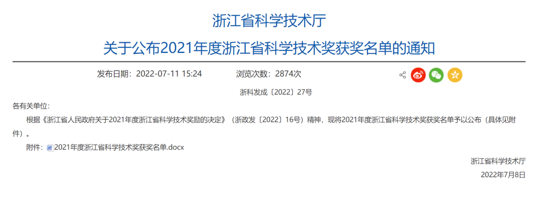 浙江省科学技术奖是浙江建设高素质强大人才队伍、打造高水平创新型省份的一项重要制度安排,是落实人才强省、创新强省首位战略的重要举措,具有鲜明的科技创新“风向标”“指挥棒”作用。