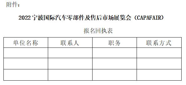 “2022宁波国际汽车零部件及售后市场展览会(CAPAFAIR)”将于2022年9月1-3日在宁波国际会展中心隆重举行。本次展会展览面积18000平方米,约920个展位。作为中国唯一出口主导型汽车零部件及用品贸易展,CAPAFAIR借助宁波汽车大产业集群、港口和外贸优势,搭建一个展示、交流、合作、贸易的专业服务平台。现我商会诚邀广大会员企业积极参观交流!具体通知如下: